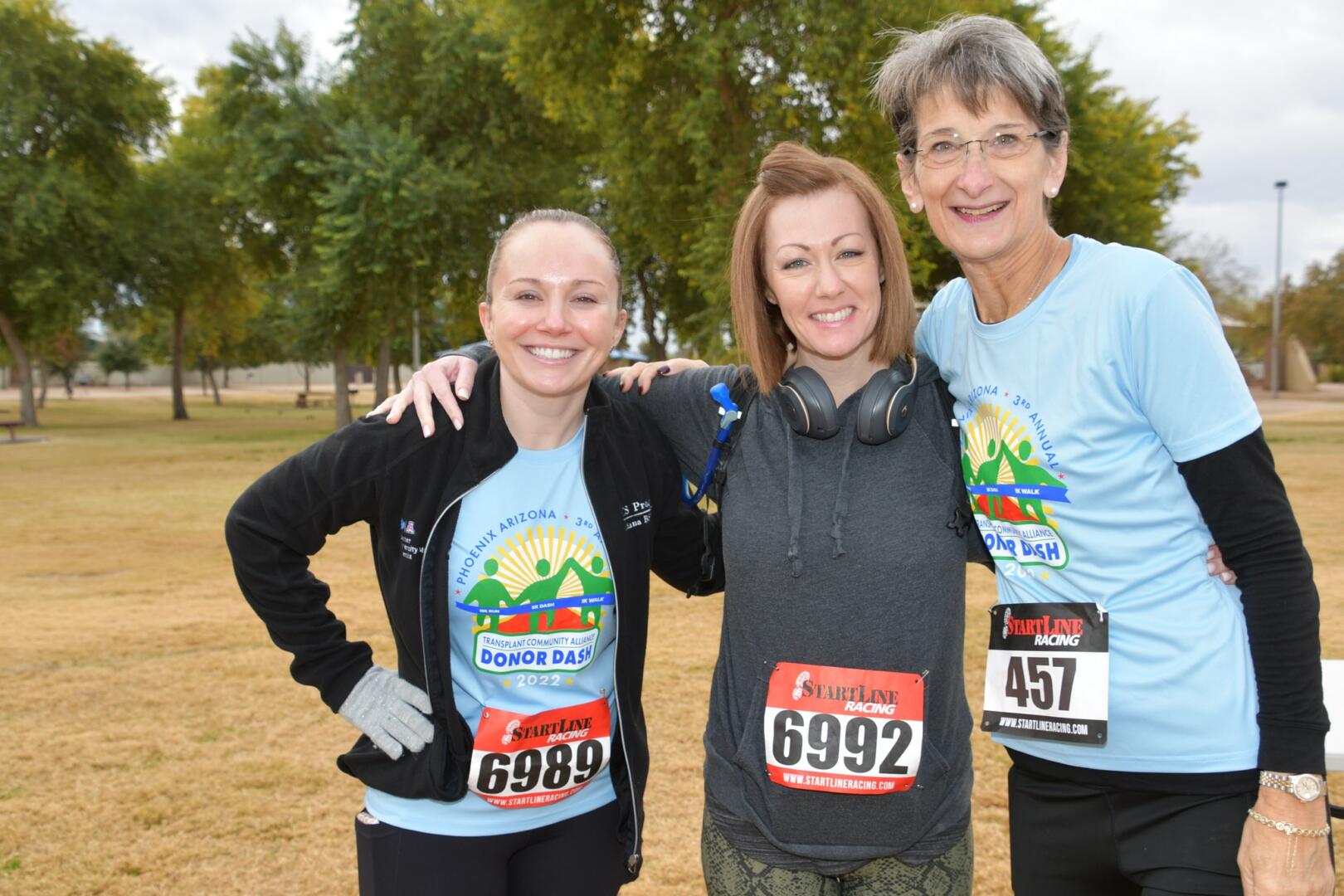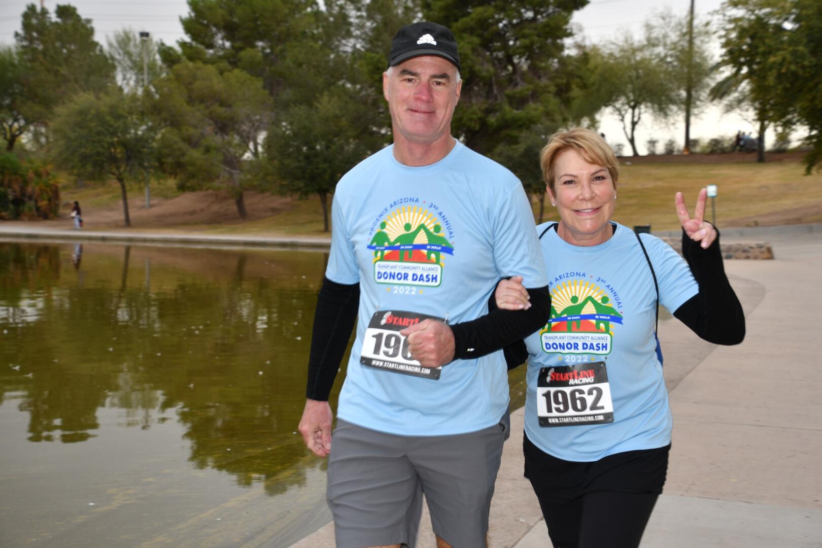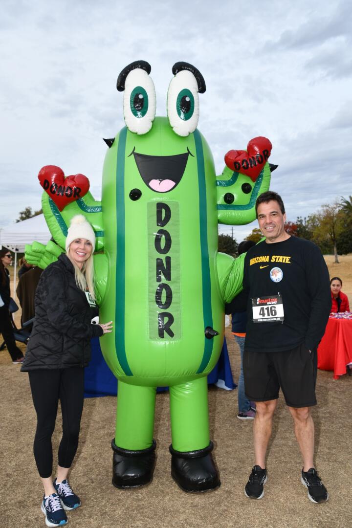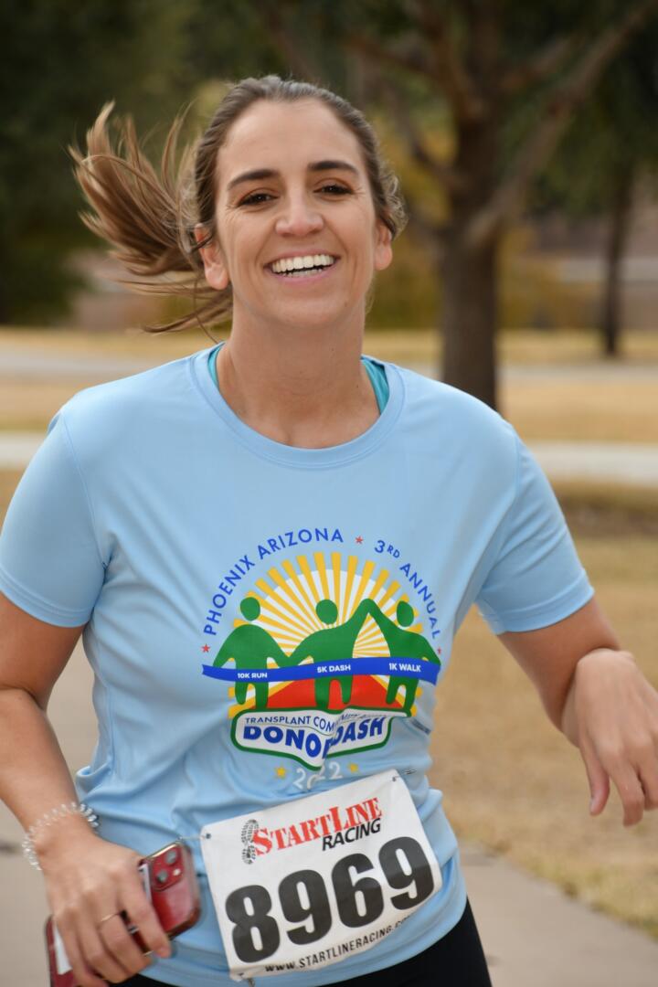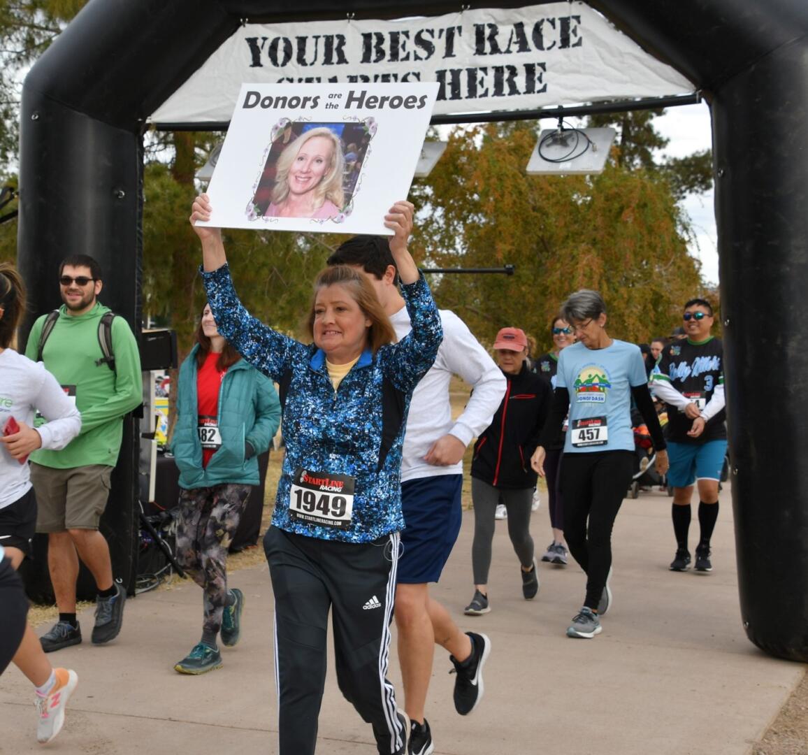 Lynn Stackrow, a 2015 lung transplant recipient, celebrates her gift of life by enjoying an active lifestyle with running, kayaking, and hiking. She ran Donor Dash to honor her own donor and celebrate her dear cousin, Carmela Nolin, who passed away last year and gave the ultimate gift of life. The community rallied behind TCA and Donor Dash with nine corporate sponsors including; Presenting Sponsors Banner Transplant Centers Phoenix and Tucson, Tempe South Rotary Club, Dignity Health, Donate Life AZ, GoodNature, Mayo Clinic, Liver Foundation, and Tortoise and Hare Sports.