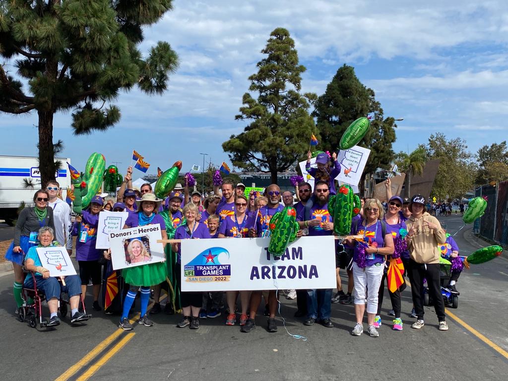 As you read this, Transplant Team AZ is traveling back to Arizona after a week at the Transplant Games in San Diego. This year, Team AZ was represented by 22 competitors and more than 40 supporters. Our team did amazingly in the competitions and is bringing home 57 medals, with 37 of those being gold. More importantly, many relations were developed and strengthened at this event. We heard stories from donors, recipients, and donor family members. Each story is touching and special in its own way, and each story has the result of adding valuable years to a person’s life. Among the costumes, parades, competitions, and medals, the focus is on honoring the gracious and selfless acts that donors and donor families make and celebrating the new life of the grateful recipients. Look for more photos and stories about the Games in September’s newsletter.