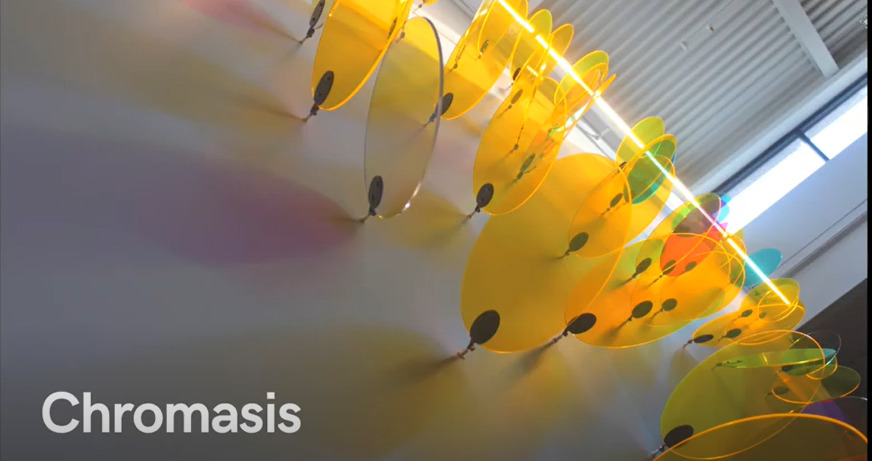 Hanging over the staircase is artwork entitled “Chromasis” by Jeff Zischke and features a sculpture of light that serves as a metaphor for giving and receiving of life. The sculpture is reminiscent of a dandelion. Giving and receiving is also the mission of the Donor Network of Arizona.